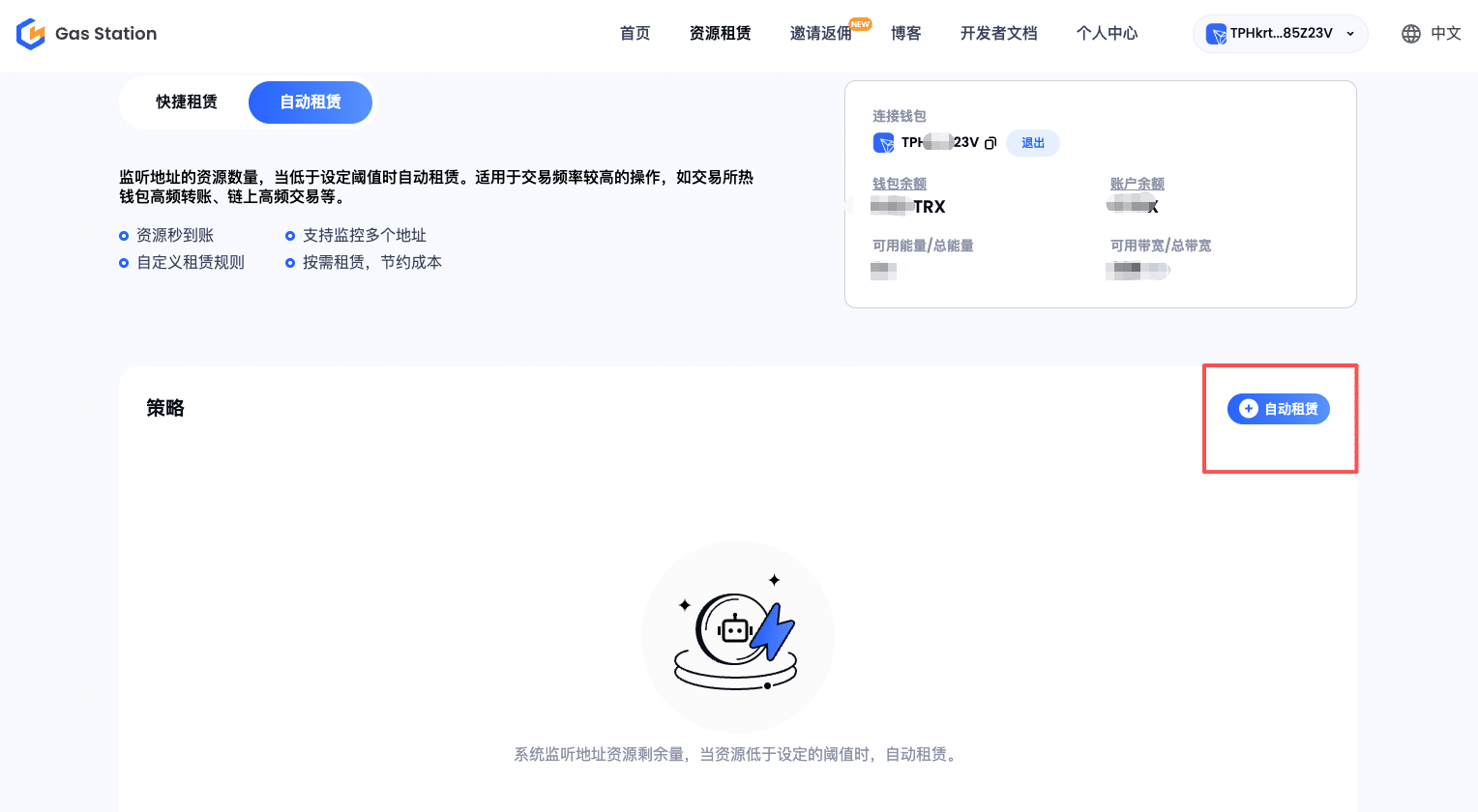 通过以下步骤,你可以快速为地址配置自动补充能量策略,系统会在需要时自动执行。
